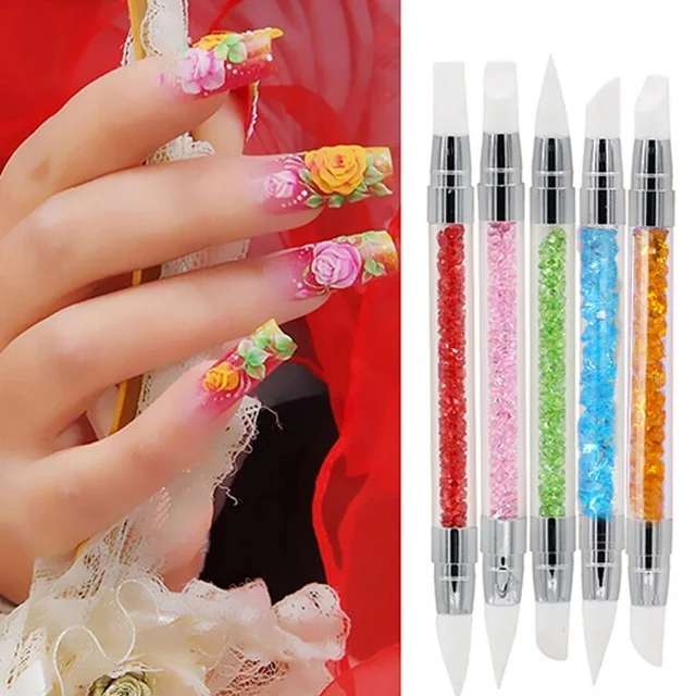 5pcs Set Nail Art Sculpture Pens Multicolor 2 Way Nail Art Silicone