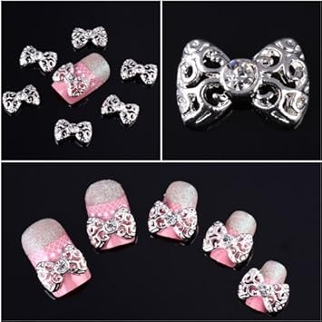 10pcs Silver Alloy 3d Bow Tie Nail Art Tips Crystal Glitter Dot