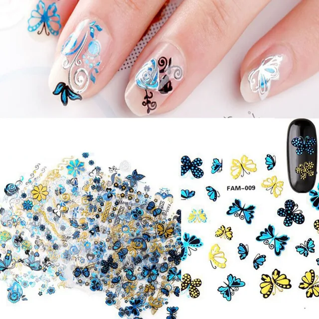 Us 2 11 Bluezoo 24 Sheets Flower Butterfly Nail Stickers 3d Nail Art Decal Decoration Diy Beauty Tips For Nails Makeup Accessories Blue In Stickers