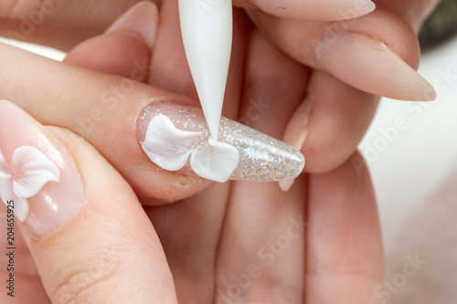 Amazing 3d Flower Nail Art Design On Tinted Glass Nails Stock