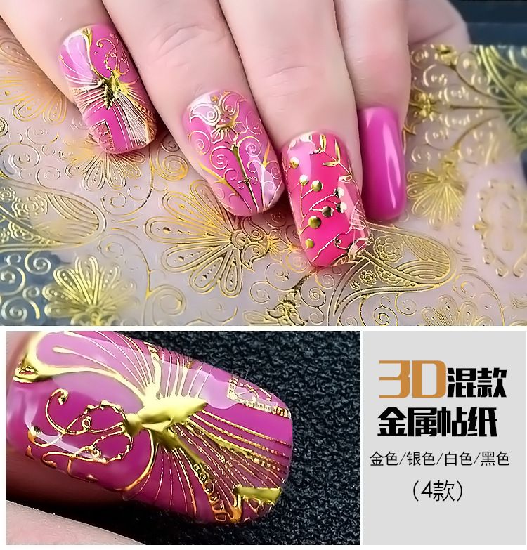 3d Gold Nail Stickers 108pcs Sheet Metallic Nail Art Decoration