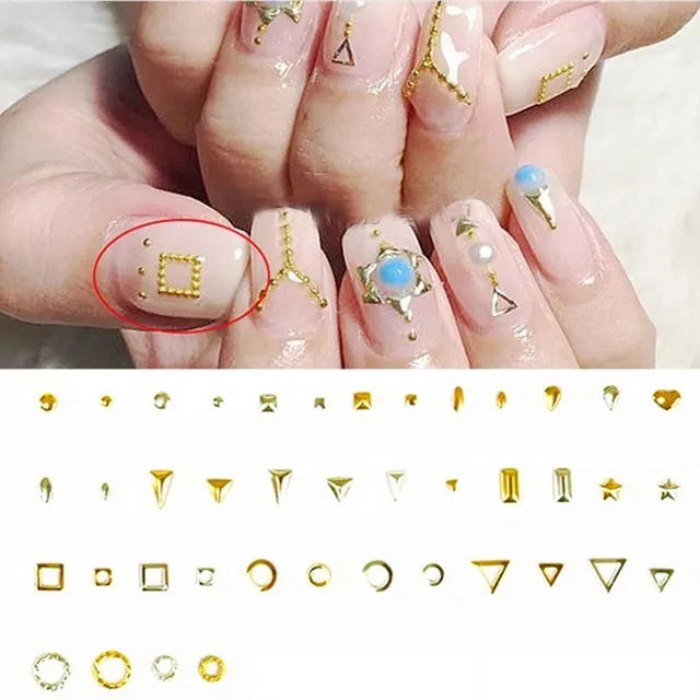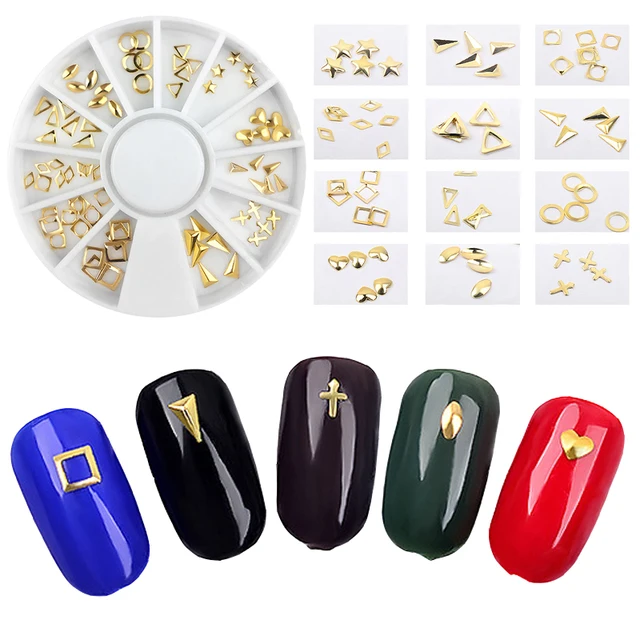1 Box Gold Nail Art Rivets Geometric Shapes Metal Nail Studs Glitter