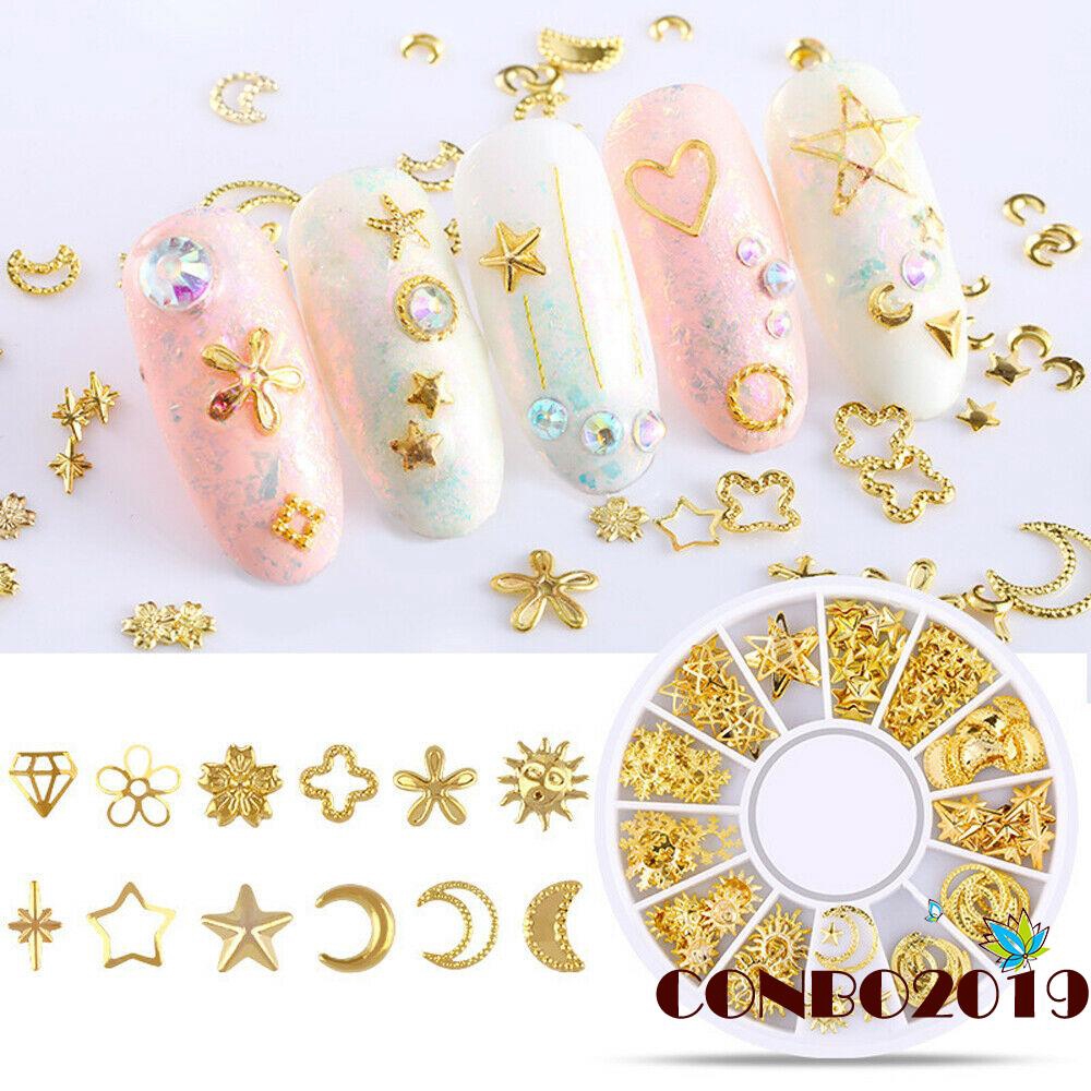 Ju 3d Metal Rivets Gold Hollow Stickers Nail Art Decals Moon Stars