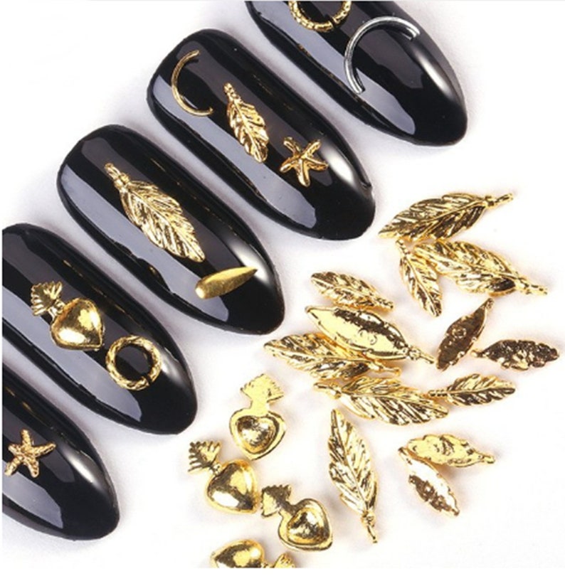 20pcs Lot 3d Metal Copper Gold Feather Heat Design Nails Art Etsy