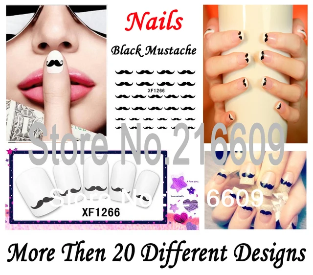 Nail art 3d 40 black mustache for nails cellphones. Skip to main content. Only 20 left in stock order soon. 0412cm best used for natural nail nail tips acrylic or uv gel nail art application.