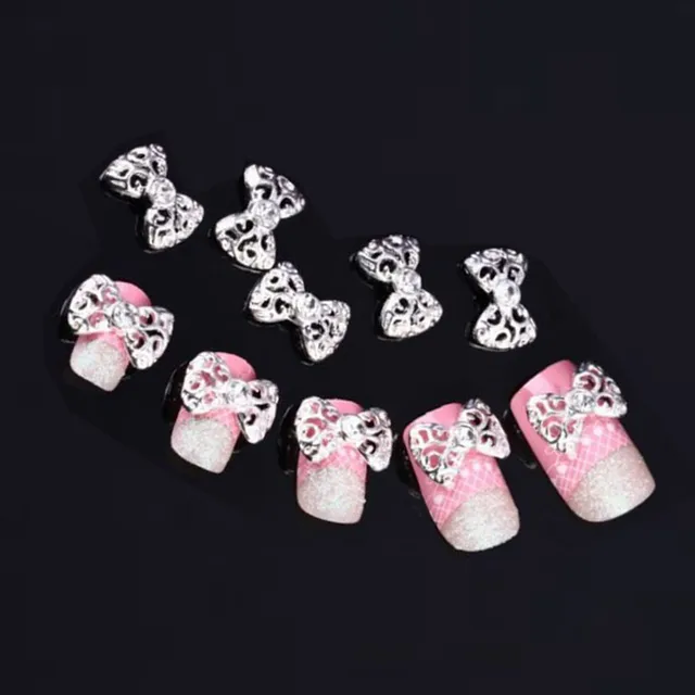 2018 Hot Sale Women 10pcs Silver 3d Rhinestones Nail Sticker Bow Tie