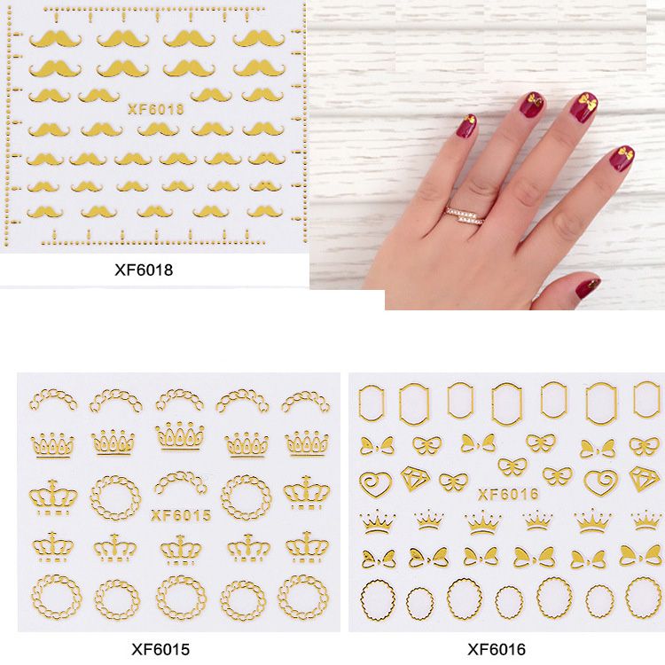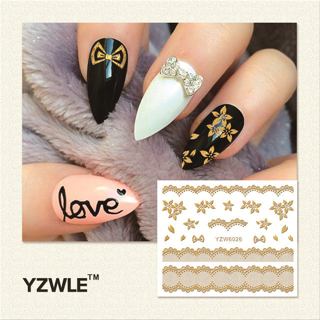 3d Nail Art Stickers Decals Metallic Gold Lace Flowers Bows Gel