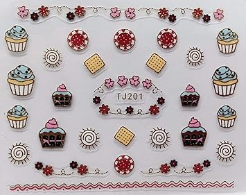 Amazon Com Nail Art 3d Decal Stickers Cupcakes Flowers Sunshine