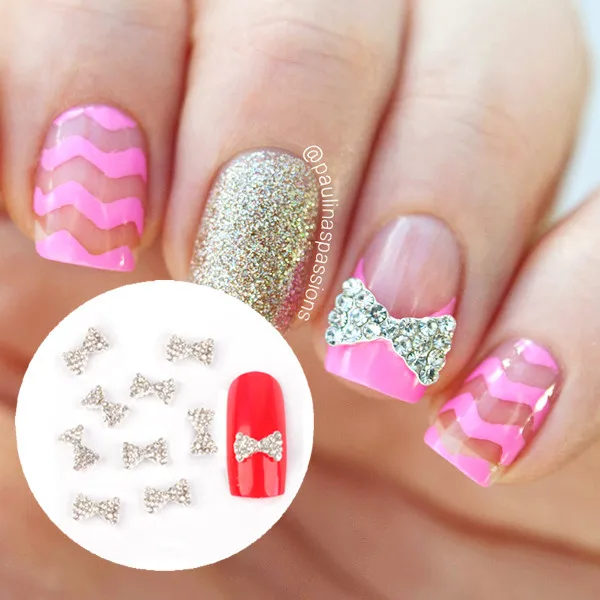 10pcs Silver Bowknot Shape 3d Crystal Charms Nail Art Acrylic Uv
