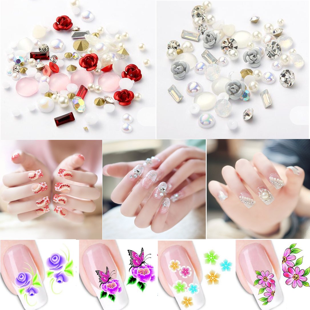 2box 3d Nail Art Decorations Nail Decals Glitter Pearl Rhinestone