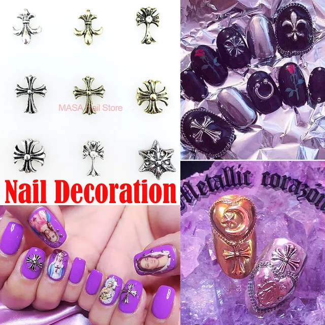 Us 2 8 10pcs Golden Silver Cross Hearts Punk Rock 3d Nail Art Decorations Alloy Nail Charms Nails Rhinestones Nail Supplies In Rhinestones