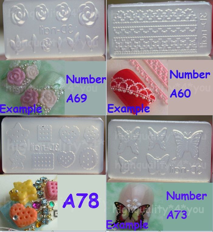 Mixed 80 Designs 3d Nail Art Acrylic Silicon Silicone Nail Mold