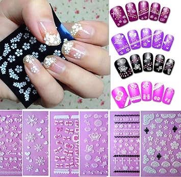 Amazon Com Sannysis Tm 6pc Flowers Bow Lace Butterfly Snow Nail