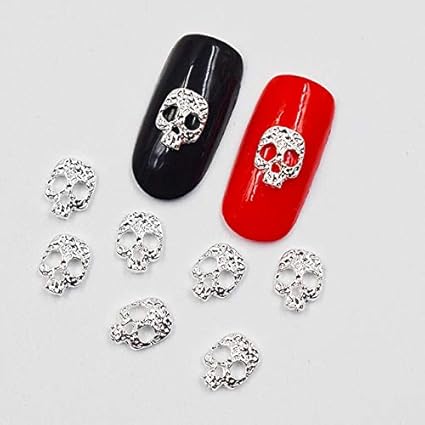 Amazon Com Nails Art Accessories 10psc New Silver Skull 3d Nail