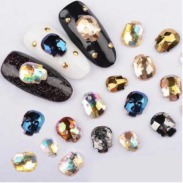 Amazon Com 10pcs Alloy Glitter 3d Nail Art Skull Decorations With
