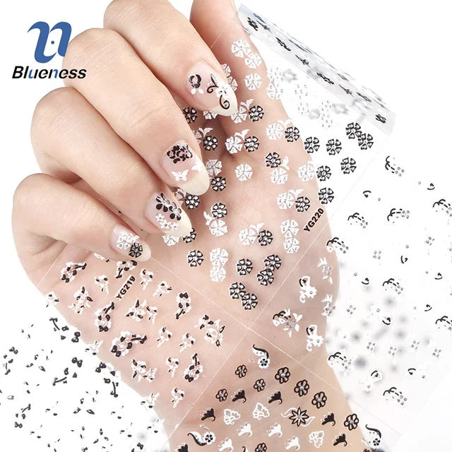 Us 2 55 Aliexpress Com Buy Blueness 3d Nail Art Stickers Beauty Summer 24 Design White Black Flower Nail Foil Manicure Decals Foil Decorations