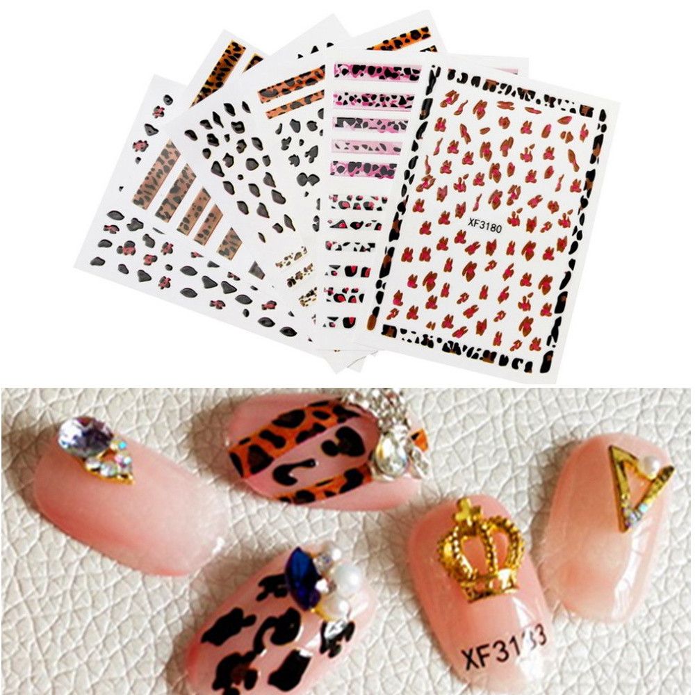 New Leopard Print 3d Nail Art Stickers Manicure Adhesive Transfer Decals Braid On The Steering Wheel With Rhinestones 9
