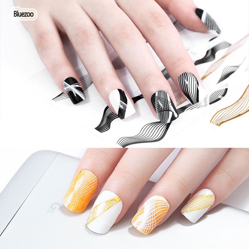 Blue Zoo 3d Nail Stickers Nail Art Transfer Sticker Black White Gold