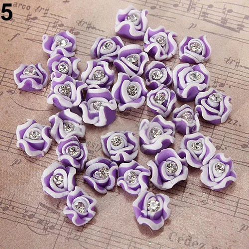 20pcs Set Fashion 3d Rose Flower Ceramic Rubber Rhinestone Nail Art