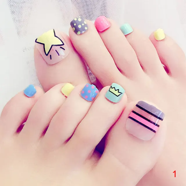 24 Pcs Set Fresh Style Toe Fake Nails 3d Foot Full Toes Nail Art Tips False Nails For Lady Girls Toenails Press On Nail