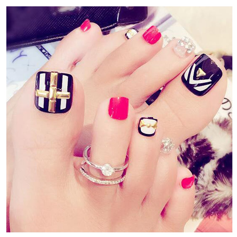 Us 1 85 24 Pcs Set 3d Toe Fake Nails With Glue Foot Full Toes Nail Art Tips Lady Girl False Nails Sswell In False Nails From Beauty Health On