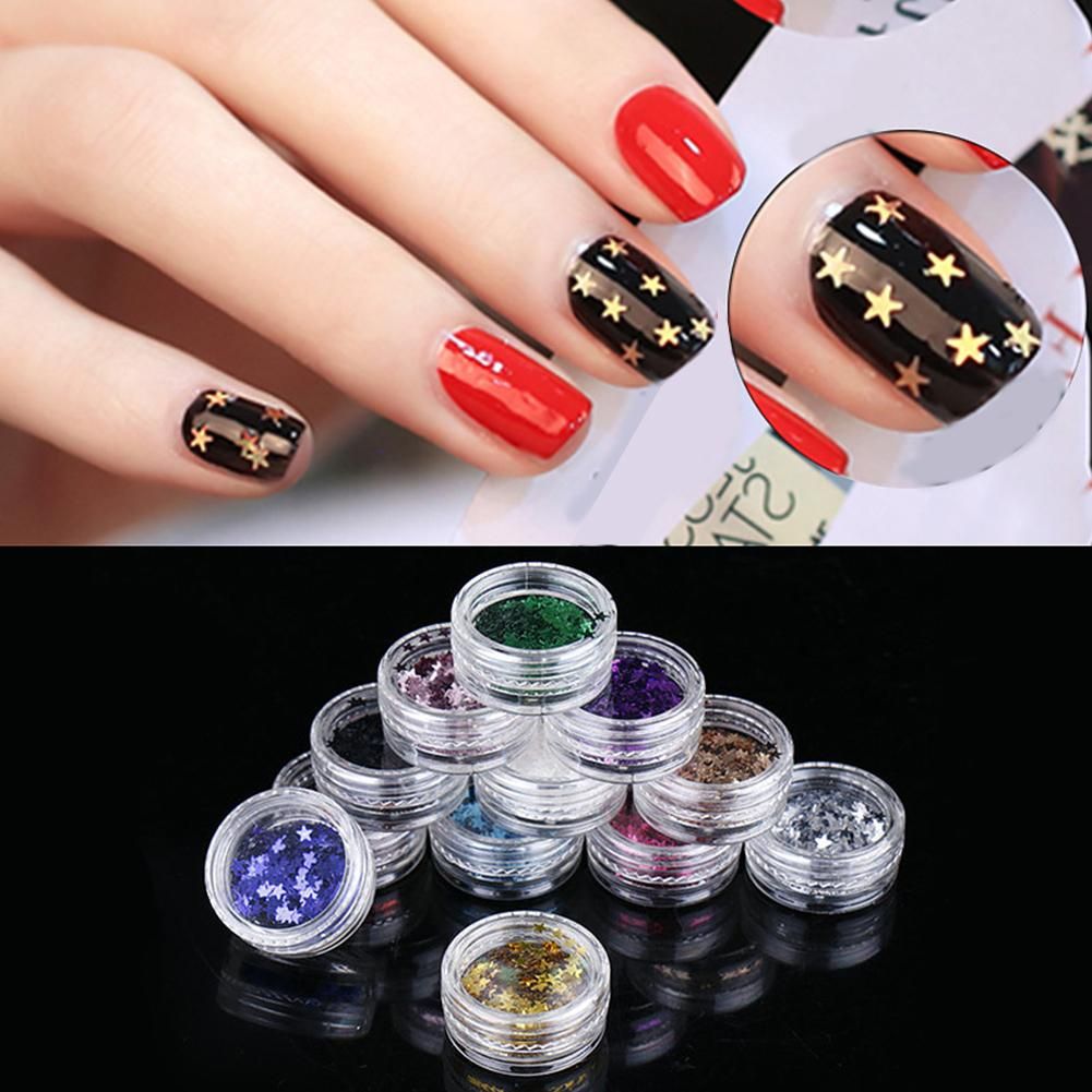 12 Boxes Nail Art Decorations Glittering Heart Moon Star Nail Art
