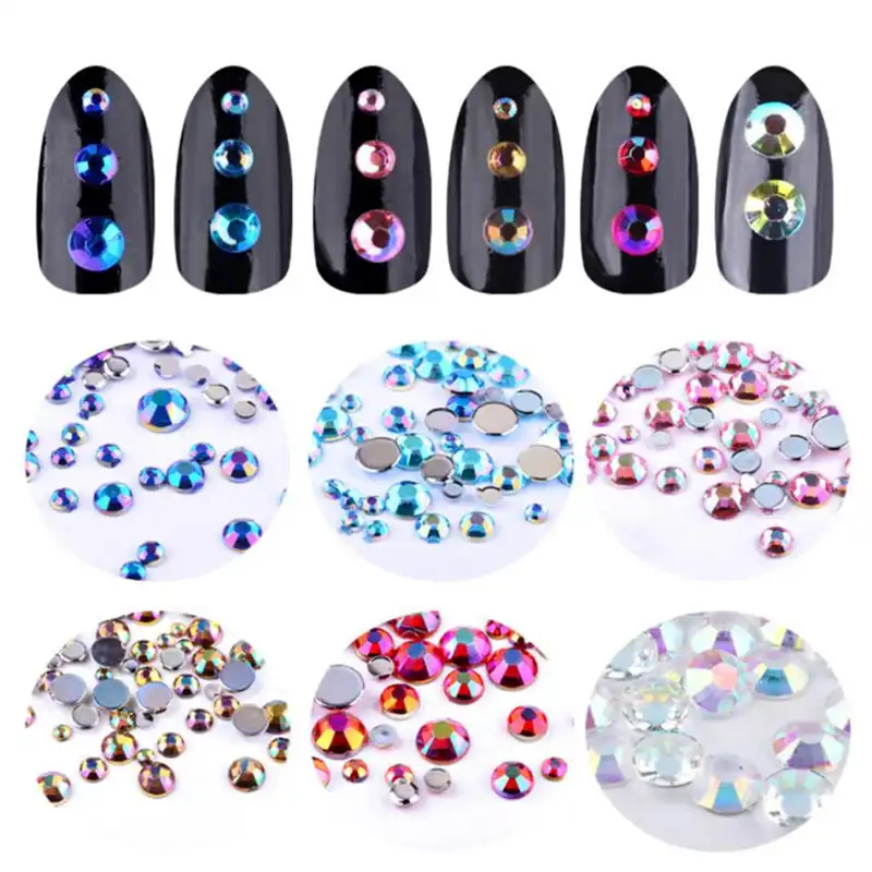 1 Bag Flat Back Rhinestone 3d Nail Decoration Colorful Multi Size