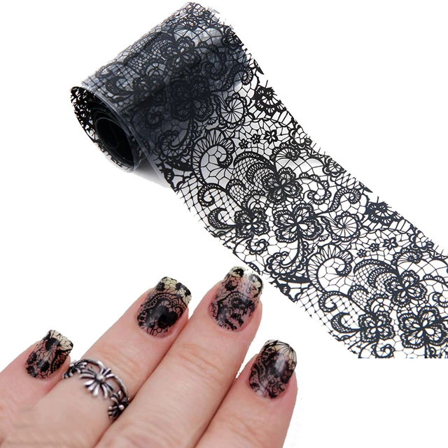 Fiori Di Pizzo Nero Nail Art Trasferimento Sventa Adesivi Sulle