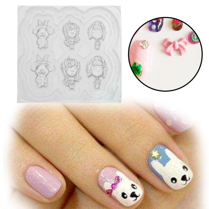 6pcs Silicone Fashion Durable 3d Acrylic Mold For Nail Art Diy