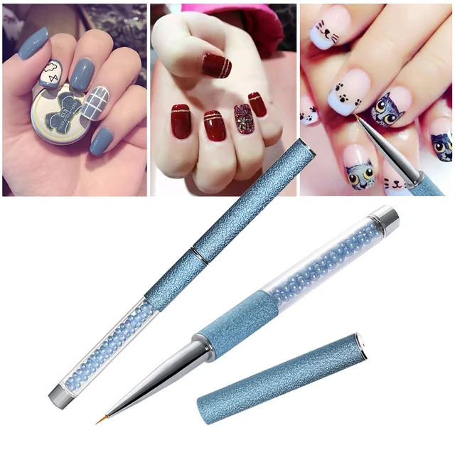 1pc Women Crystal Acrylic Nail Dotting Sky Blue Pearl Nail Art Pen Drawing Liner Nail Brush Diy Manicure Painting Tools In Nail Brushes From Beauty