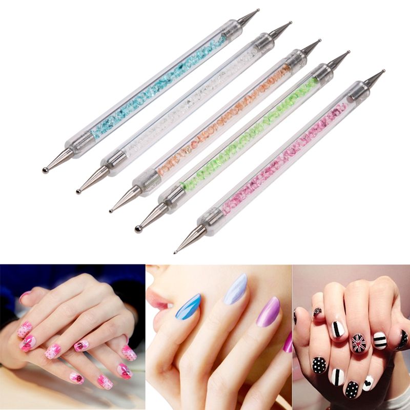 5pcs Set Double Heads Nail Art Dotting Pens Crystal Rhinestone Acrylic Handle Uv Gel 3d Nail Tips Diy Manicure Dotting Pens