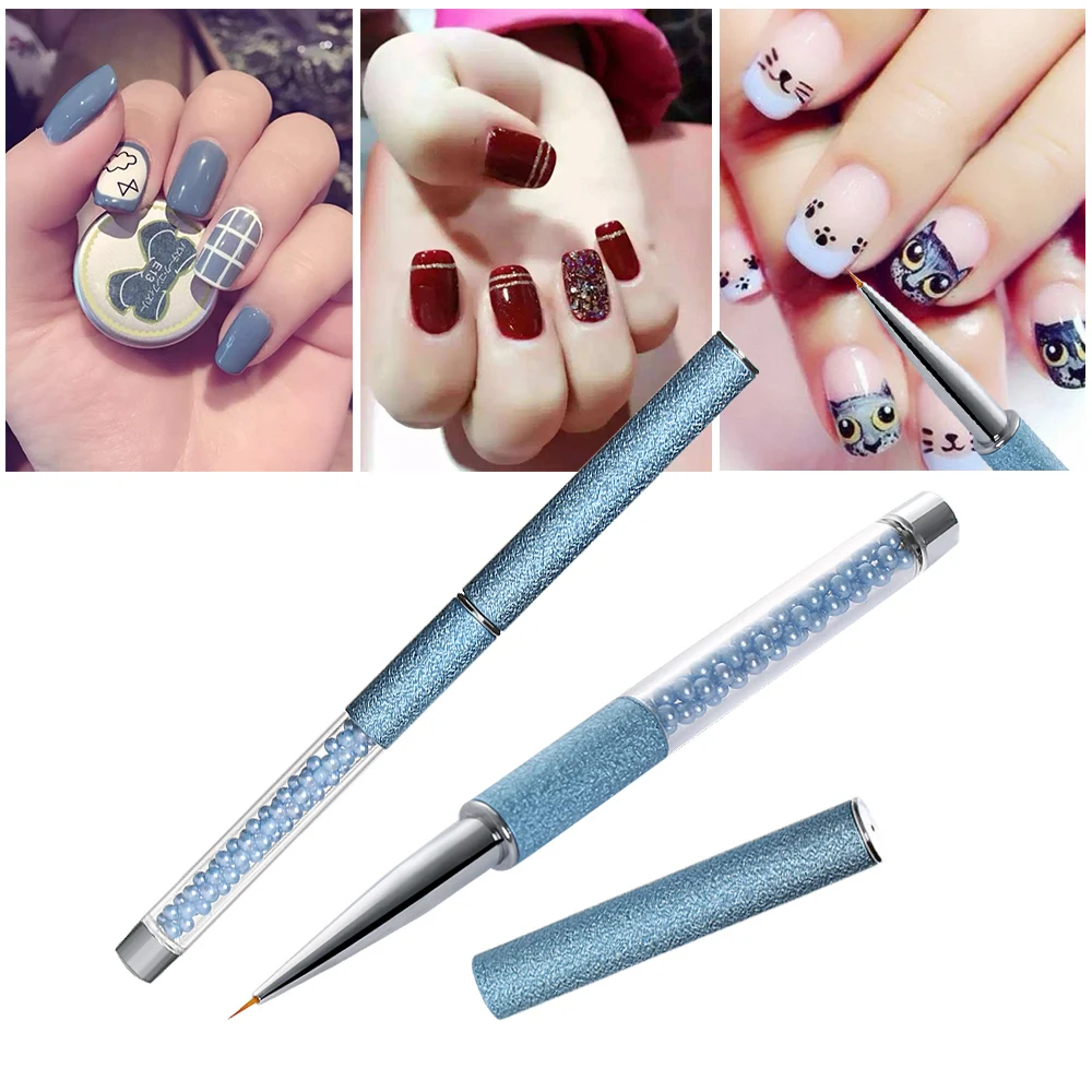 Us 3 09 5 Off Fashion Sky Blue Crystal Acrylic Nail Art Pen Drawing Liner Nail Doting Painting Brush Diy Manicure Decoration Pedicure Tools In Nail