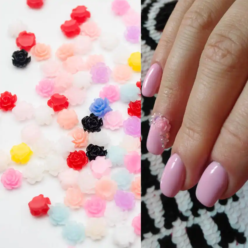 Mix Color Acrylic Rose Flowers Nail Design 6mm Nail Flowers 3d Nail