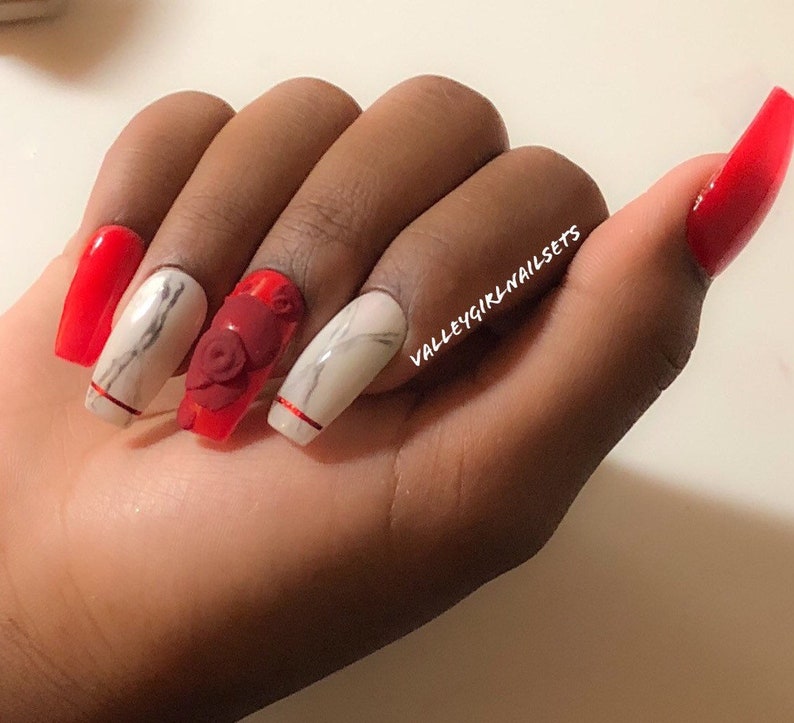 Attractive Acrylic Rose Nail Art Component Design Ideas Red