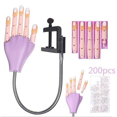 1 Practice Hand 100pcs Fasle Nails Adjustable Nail Art Model Hands