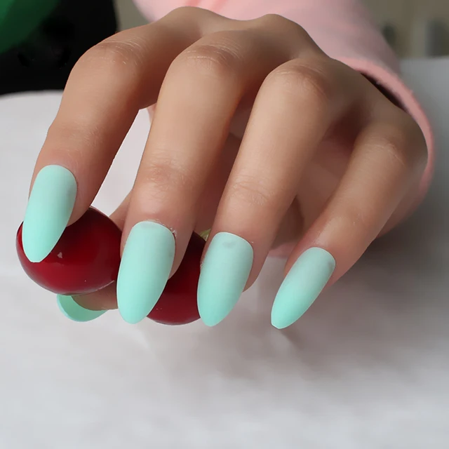 It can be a great way to transform your nails and your look. Even though nail art looks fantastic and is hugely popular and in trend you shouldnt need to have to head to a salon to get. These almond shaped nails are the perfect choice for someone who likes long nails that are rounded and pointed at the tips. These almond shaped nails have an icy green color with a matte top coat.