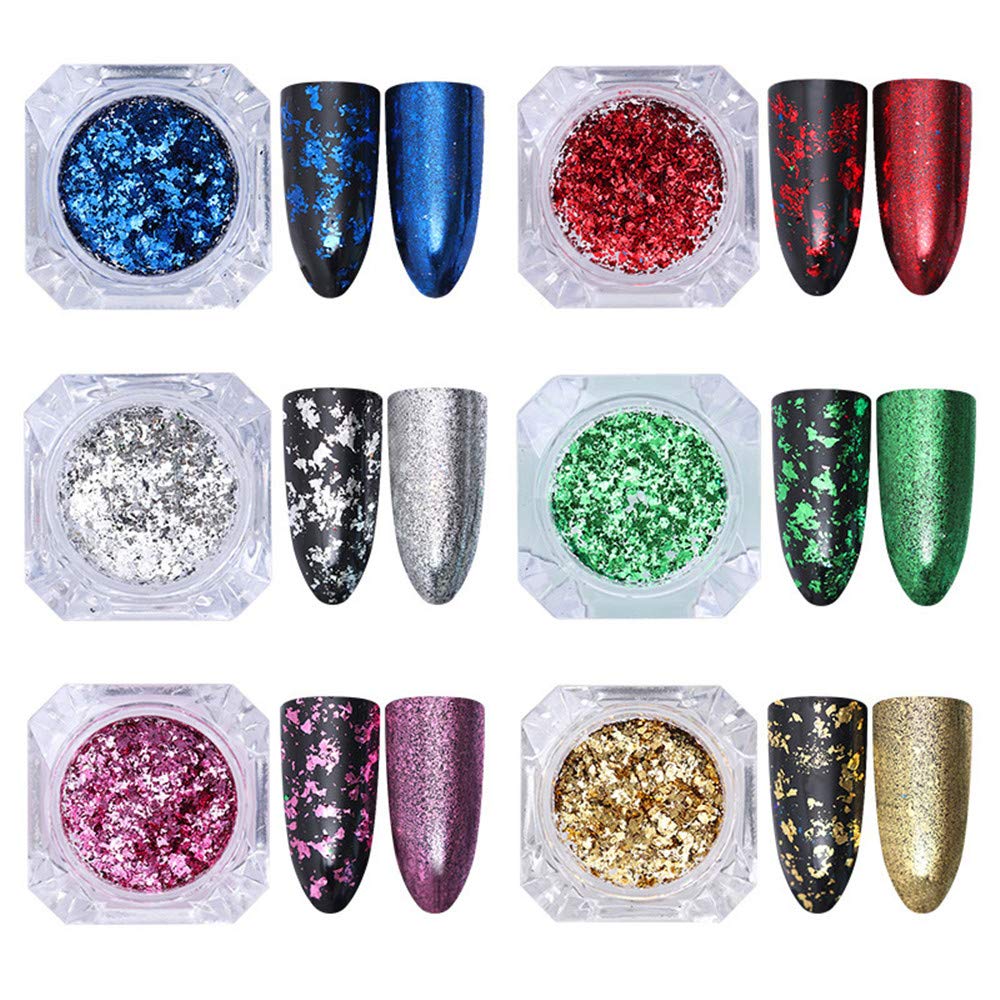 Amazon Com Nail Sequins 6 Colors Shining Nail Art Giltter Powder