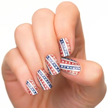 Nail tips 24 pcsset america flag design false fake nails acrylic nail art with glue beauty fashion the american flag 50 out of 5 stars 1 399 3. Elegant flag art on black nails. If you want to leave stickers on your nails you should apply 1 2 thick layers of top coat to seal stickers completely to the nail. Use white lacquer as a background.