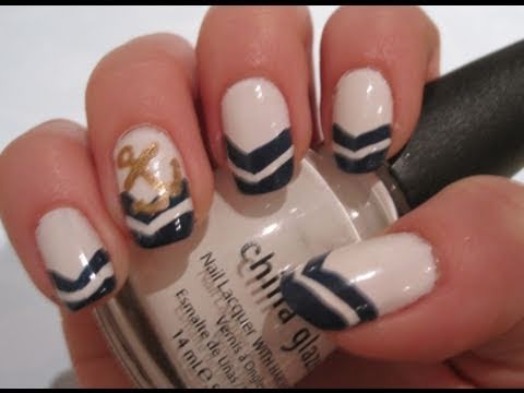 Nautical Nail Art Tutorial Anchor Chevrons Youtube