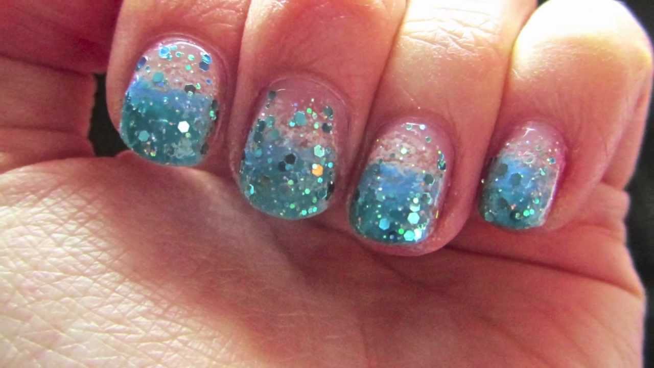 Aquamarine Nail Art Aqua Gradient Glitter Summer Nails Favnails