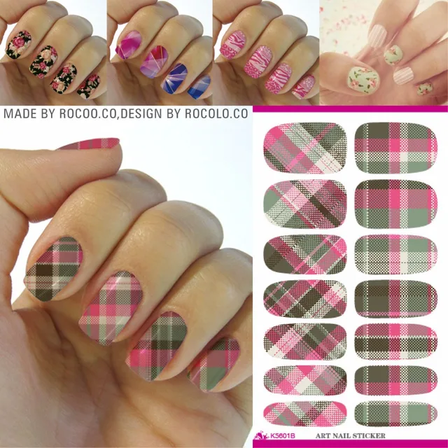 Us 0 49 62 Off Aliexpress Com Buy Rocooart Classic Plaid Nail Art Sticker Multi Color Water Transfer Nail Decals Minx Manicure Decoration Styling
