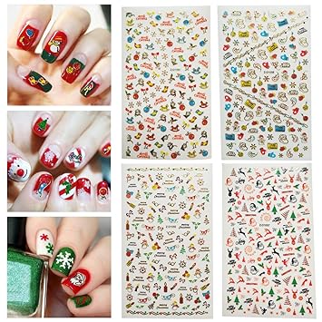 Dadiii Christmas Nail Stickers Art Tattoo Decals Self Adhesive Sticker Nail Wraps With Christmas Designs 4 Sheets