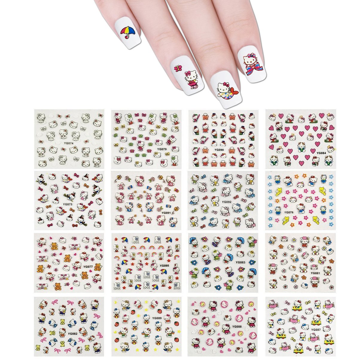 Allydrew 24 Sheets Kitty Cat Nail Stickers Set Cat Nail Art Nail Decals 700 Nail Stickers