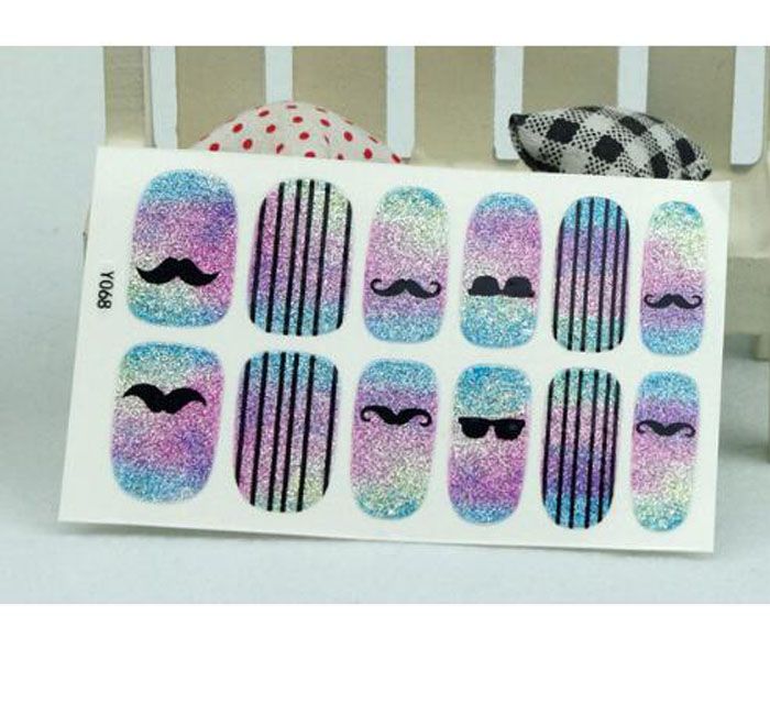 Fashion Women Adhesive Art Nail Stickers Mustache Gradient Rainbow Nail Wraps Sticker Manicure Glitter Decor Foil Decals