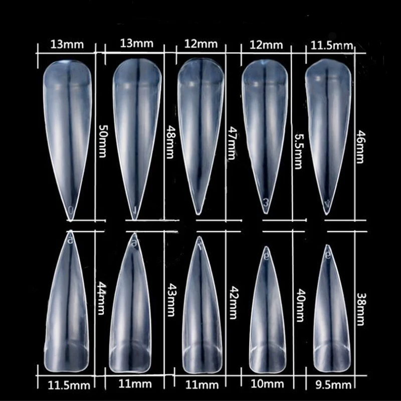 600pcs Se Nail Art Clear Natural Full Cover Oval Sharp End Stiletto