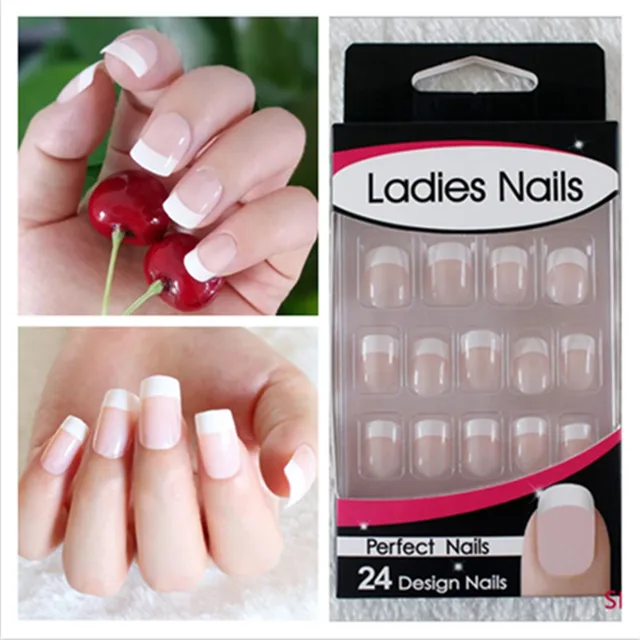O New 24pcs French False Nail Stickers Nail Art Artificial Full Fake