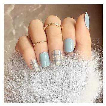 Amazon Com Meniliths 24pcs Blue And Gray False Nail With White Line