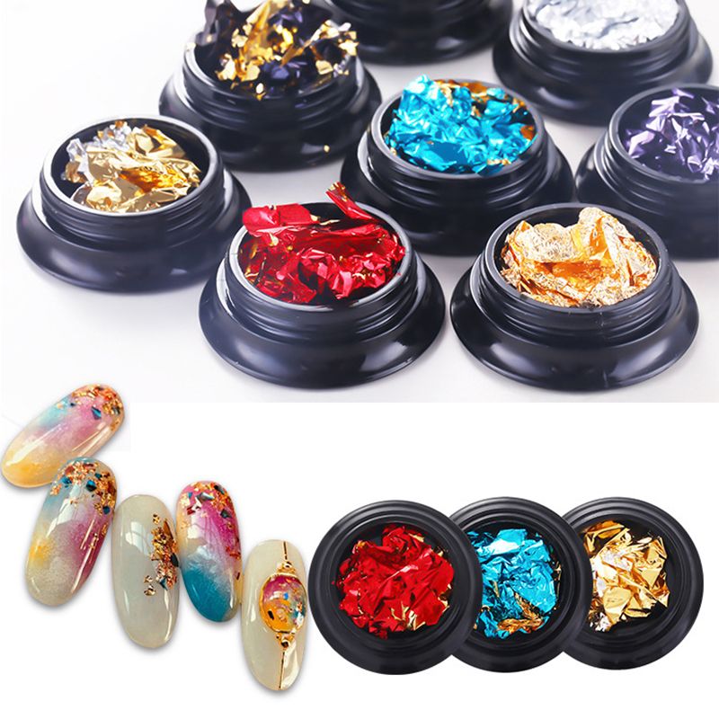 Nail Gold Silver Glitter Red Flake Chip Foil Paper Sticker Manicure