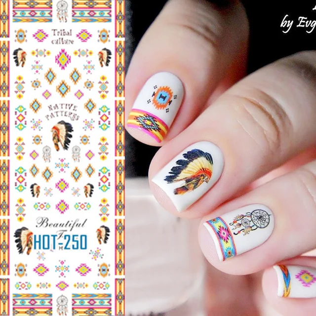 1 Sheet Tribal Patterns Nail Water Decals Colorful Aztec Transfer