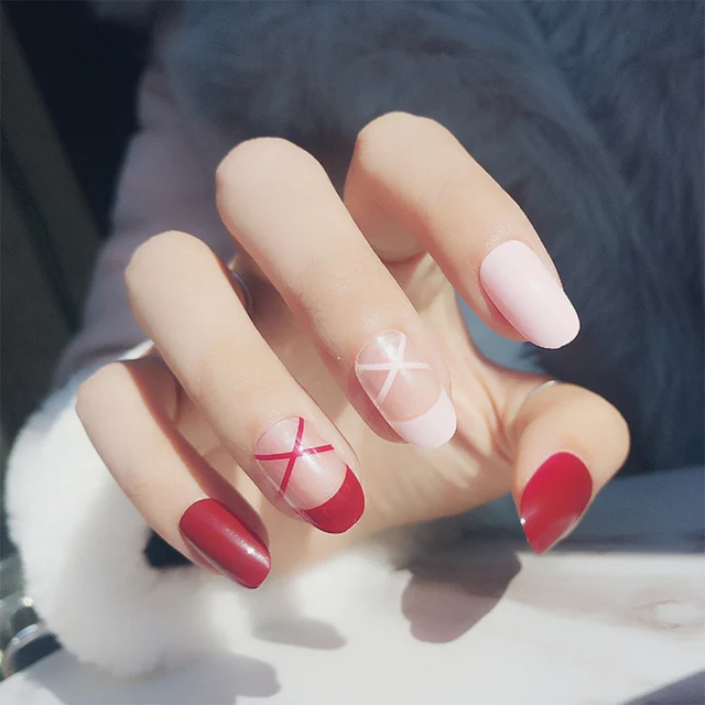 Us 3 99 24pcs Set Full Finished Retro Red False Nails Middle Long Ballet Shoe Design Girls Nail Art Decoration Fake Nail Tips In False Nails From